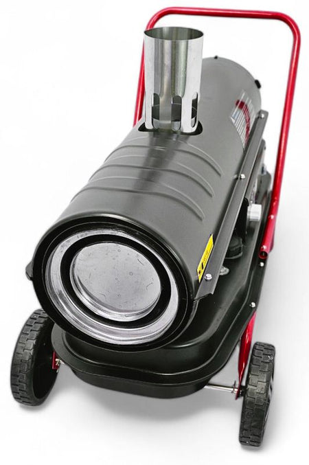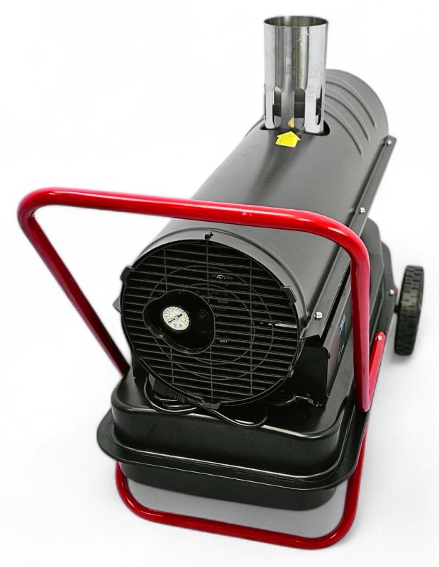 Die indirekte Heizkanone DT-20Di von DeTec. ist die ideale Lösung zur zuverlässigen Beheizung von großen, unbeheizten Räumen wie Werkstätten, Lagerhallen, Baustellen, Produktionsstätten oder Kellern. Mit einer Heizleistung von bis zu 20.000 Watt erzeugt dieser leistungsstarke Bauheizer bis zu 1.100 m³/h saubere, trockene Heißluft – ganz ohne offene Flamme im Aufstellraum.Dank der indirekten Verbrennung eignet sich dieses Gerät auch für den Einsatz in geschlossenen Räumen, da die entstehenden Rauchgase über einen integrierten Kaminanschluss sicher nach außen abgeführt werden können. Der großzügige 38-Liter-Tank ermöglicht eine Betriebsdauer von bis zu 27 Stunden, was besonders für den Dauereinsatz im gewerblichen Bereich von Vorteil ist.Das robuste, pulverbeschichtete Metallgehäuse schützt zuverlässig vor äußeren Einflüssen. Mit integriertem Thermostat, Überhitzungsschutz und einem Edelstahl-Heizelement bietet der DeTec. Bauheizer hohe Sicherheit und Langlebigkeit – auch unter anspruchsvollen Bedingungen.EIGENSCHAFTEN: Absicherung:16 ABrennkammer: EdelstahlGebläseleistung: 1100 m³/hGehäuse: Metall, pulverbeschichtetHeizelement: EdelstahlKraftstoff: Diesel / Kerosin / HeizölLaufzeit: ca. 27 StundenMaße: (LxBxH): 910x455x665 mmNennstrom: 1 ASpannungsversorgung: 230V, 50HzSpitzenleistung: 20000 WattStromaufnahme: 340 W, 340WTankvolumen: 38 LThermostat: integriert