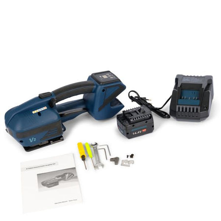 Die Verpackung spielt eine wichtige Rolle, damit der Inhalt sicher transportiert wird. Ein Akku-Umreifungsgerät ist dabei die optimale Lösung, damit die Verpackungseinheit sich beim Transport nicht öffnet und der Inhalt geschützt ist.Die Handhabung vom DeTec. DT-UMV2 Akku-Umreifungsgerät ist einfach und unkompliziert. Es arbeitet zuverlässig und schnell, ohne dass zusätzliche Verschlusshülsen notwendig sind.Daten zum UmreifungsgerätMaße340 x 130 x 118 mmGewicht ohne Batterie2,90 kgGewicht mit Batterie3,20 kgZugstärke60-2800N, einstellbar (der maximale Wert hängt von der Qualität der Bänder ab)BandgrößeBreite 13-16 mm, Dicke 0,4-1.2 mmSpanngeschwindigkeit100-200 mm/sLufttemperatur5-45 °CHaftfestigkeitca. 75% des Umreifungsbandes (abhängig von der Bandqualität)Optimale Arbeitstemperatur15-20 °C Unsere Umreifungsmaschinen sind so konzipiert, dass sie Ihnen helfen, Ihre Produkte effizient zu verpacken, wobei der Schwerpunkt auf Sicherheit und Qualität liegt,Beim Versenden von Waren kommt es nicht nur darauf an, dass der Inhalt stimmt, sondern auch auf die richtige Verpackung.Finden Sie mit unserer großen Auswahl an Umreifungsgeräten die perfekte Umreifungslösung für Ihre Verpackungsanforderungen.Neben einem hohen Bedienkomfort überzeugt das Umreifungsgerät mit Akku durch einen leistungsstarken Lithium-Ionen-Akku. Dieser sorgt nicht nur für eine ausgezeichnete Spannkraft, sondern verzichtet dabei vollständig auf den typischen Memory-Effekt. Das heißt, der Akku kann auch durchaus im halbvollen Zustand wieder geladen werden, ohne dass es dabei zu einem Verlust der Leistungskraft kommt. Die kohlenbürstenarmen Motoren sind wartungsarm, sodass eine unkomplizierte Nutzung zu jeder Zeit gegeben ist. Genießen Sie schnellen Versand, wettbewerbsfähige Preise und Qualitätsprodukte, wenn Sie bei uns einkaufen. Daten zur Stromquelle und LadegerätStromquelle (Akku)TypLithium-Ionen-AkkuSpannung14,4 VoltLeistung4,0 AmpereAufladegerätEingangAC 230V / 50-60 Hz 75WAusgang10,8.18V Max DC 3,5A