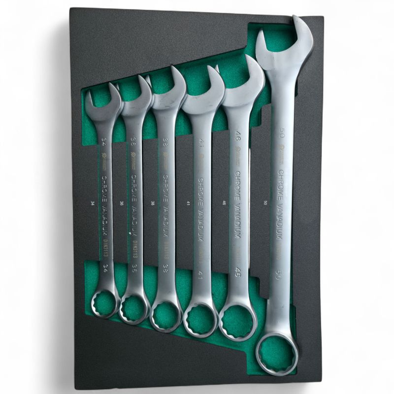 Einleger 6 – Extra große Ringmaulschlüssel 34–50 mm Für besonders massive Verschraubungen an Achsen, Hydraulik und Großaggregaten.