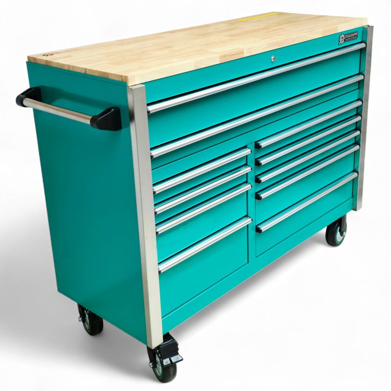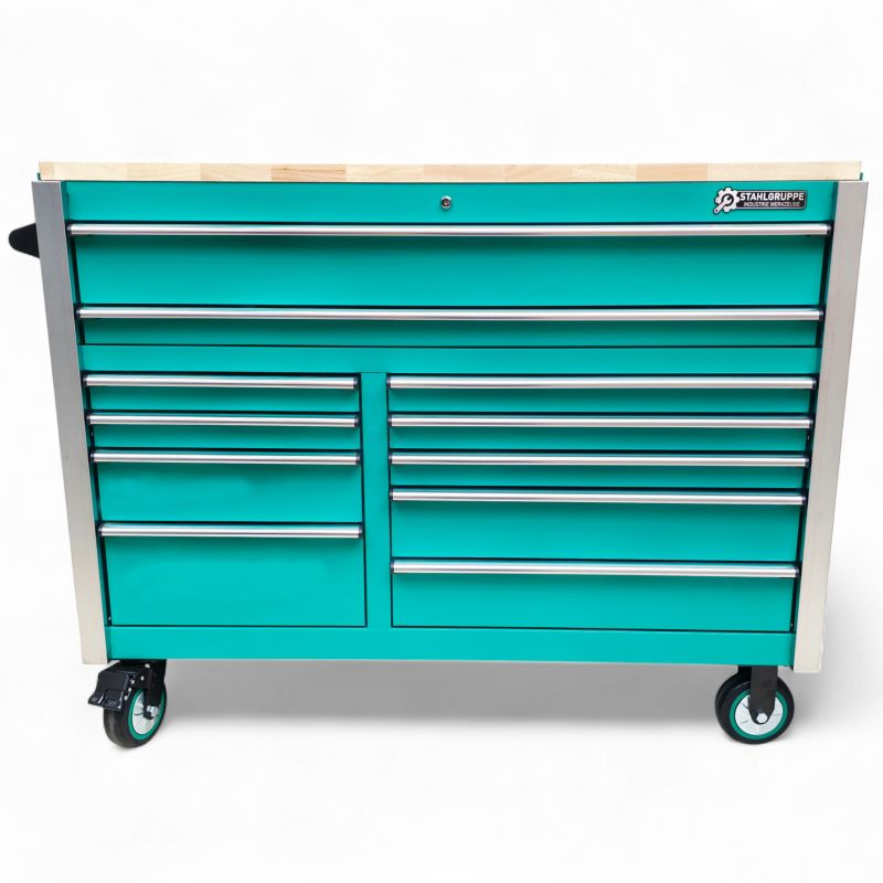 Der Werkstattwagen DT-56 ist die ideale Komplettlösung für Nutzfahrzeug-, LKW- und Landmaschinen-Werkstätten. Mit 11 leichtgängigen Schubladen, davon 9 vollständig mit hochwertigem Profi-Werkzeug bestückt, deckt dieser Wagen nahezu alle Anforderungen im harten Werkstattalltag ab. Robuste Bauweise, logisch sortierte Werkzeugeinlagen und eine praxisorientierte Zusammenstellung machen ihn zum zuverlässigen Partner für Mechaniker, Monteure und Servicetechniker.